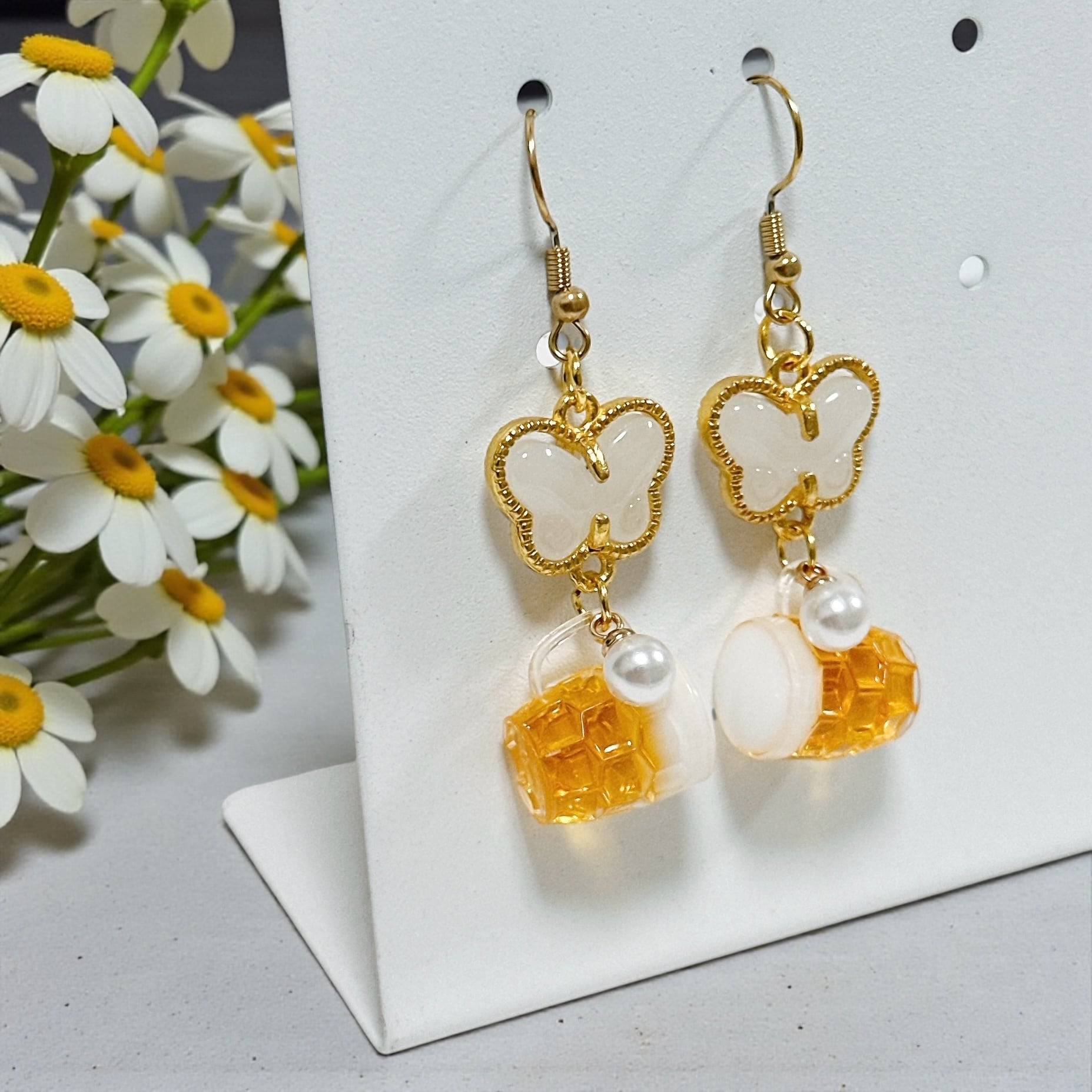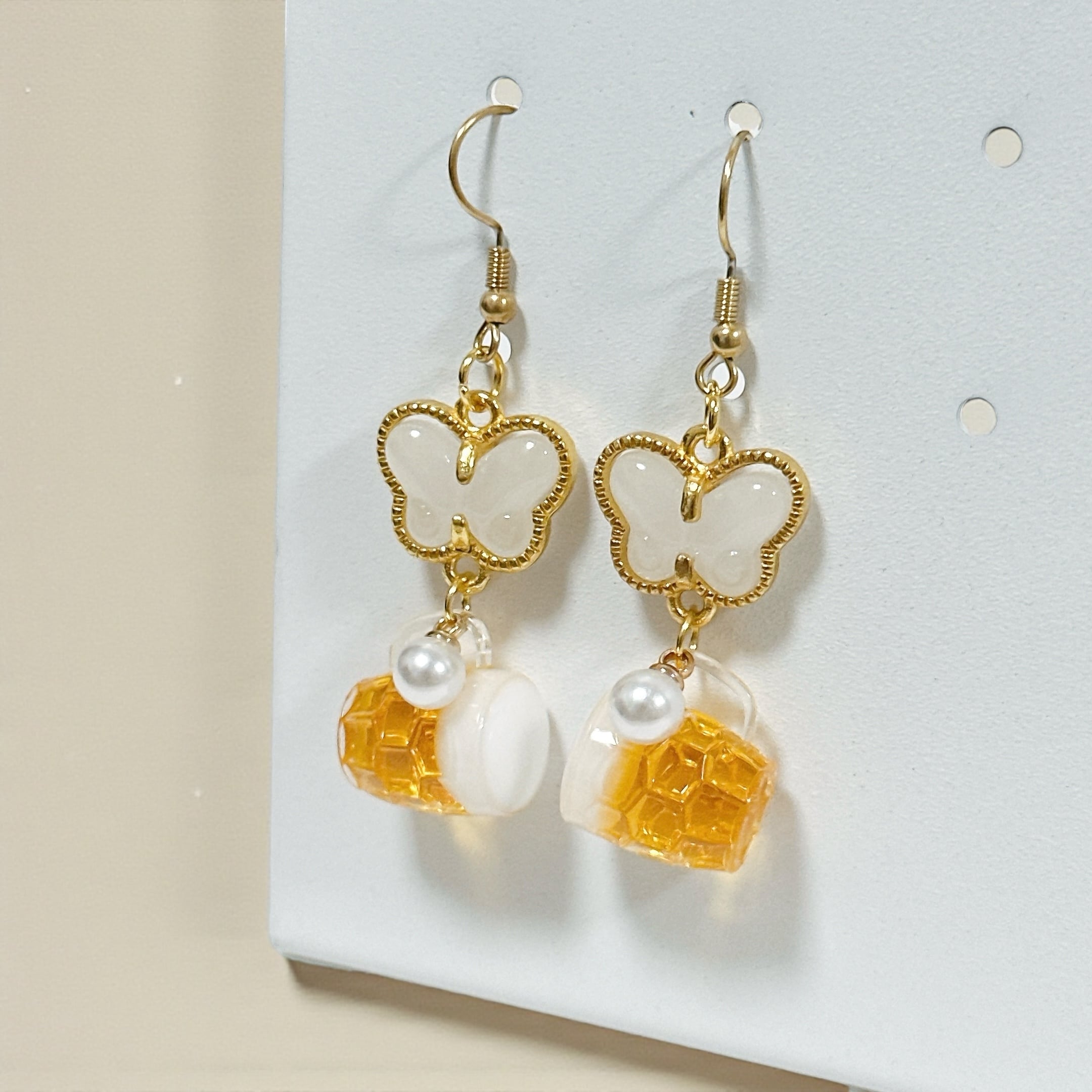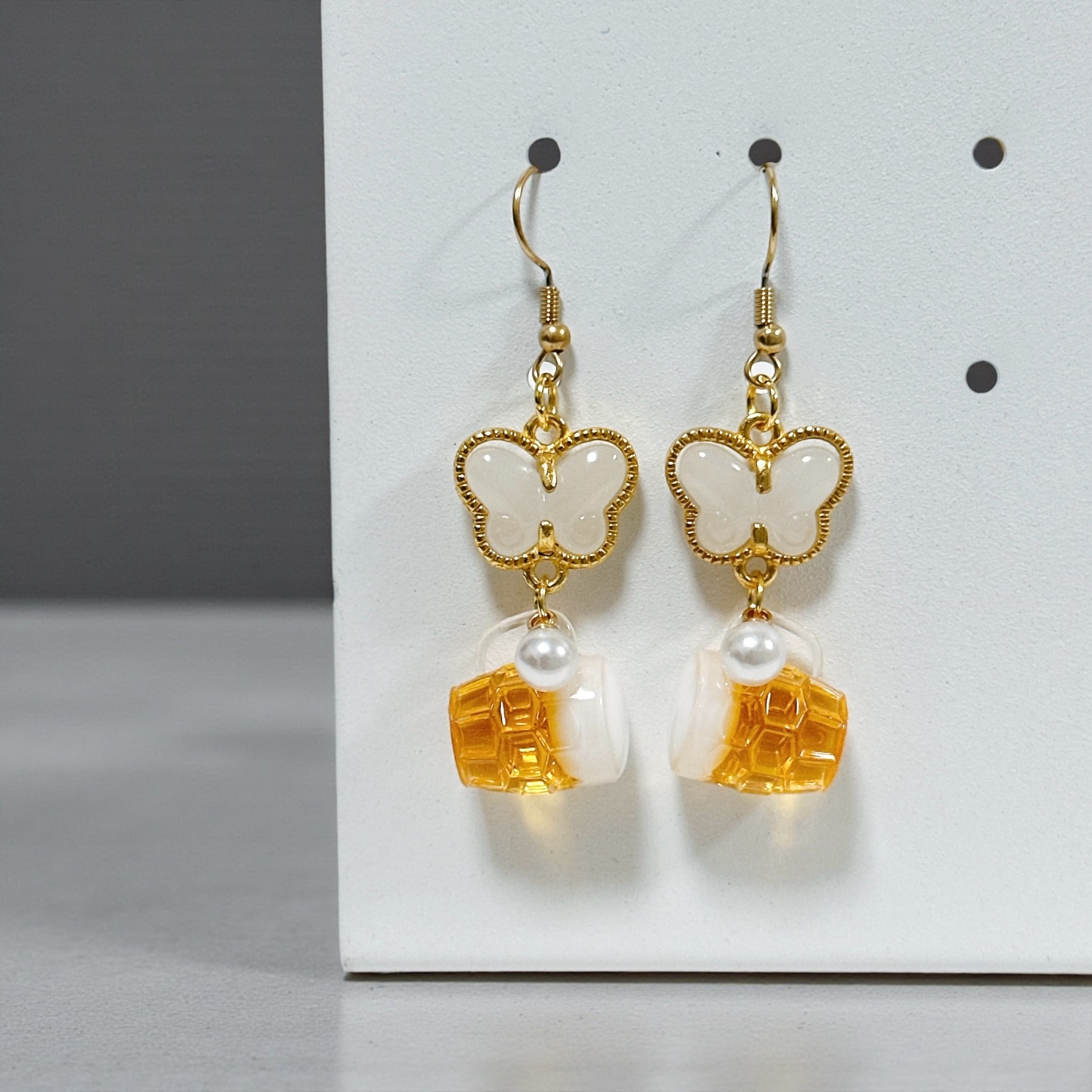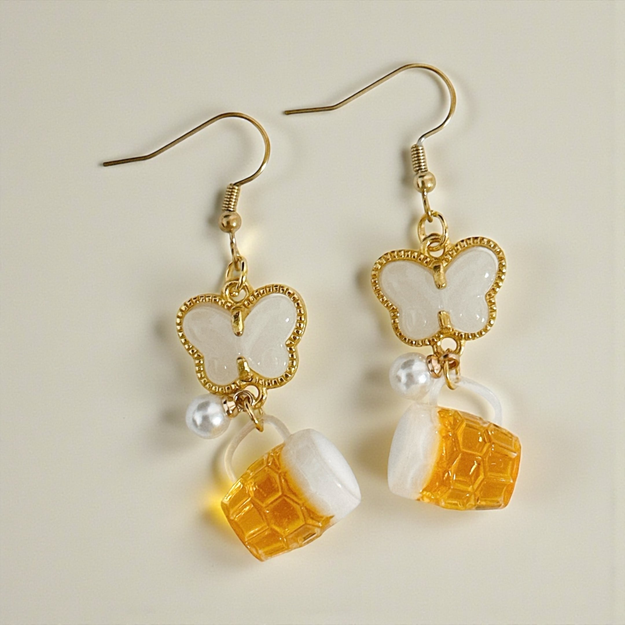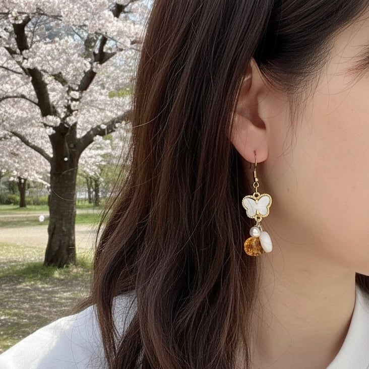 乳白色のストーンを使用した蝶のチャームとパールで大人っぽさも演出♪