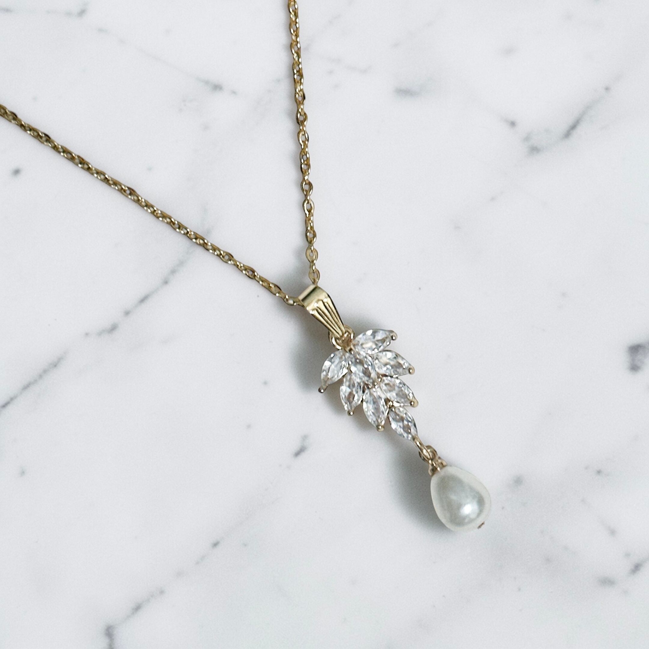 クリアストーンホップネックレス(pearl)【エレガントライン】