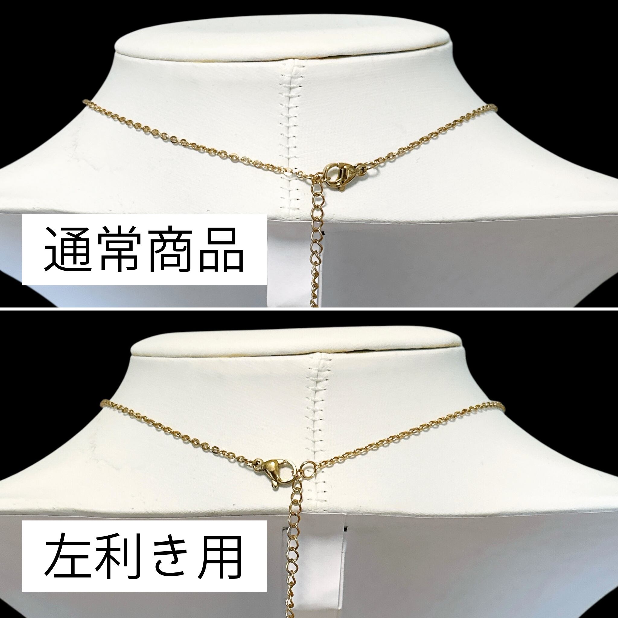 ネックレスはお好きな素材・長さをお選びいただけます。全て+5cmのアジャスターがついているので、洋服に合わせて長さの調節ができます。
