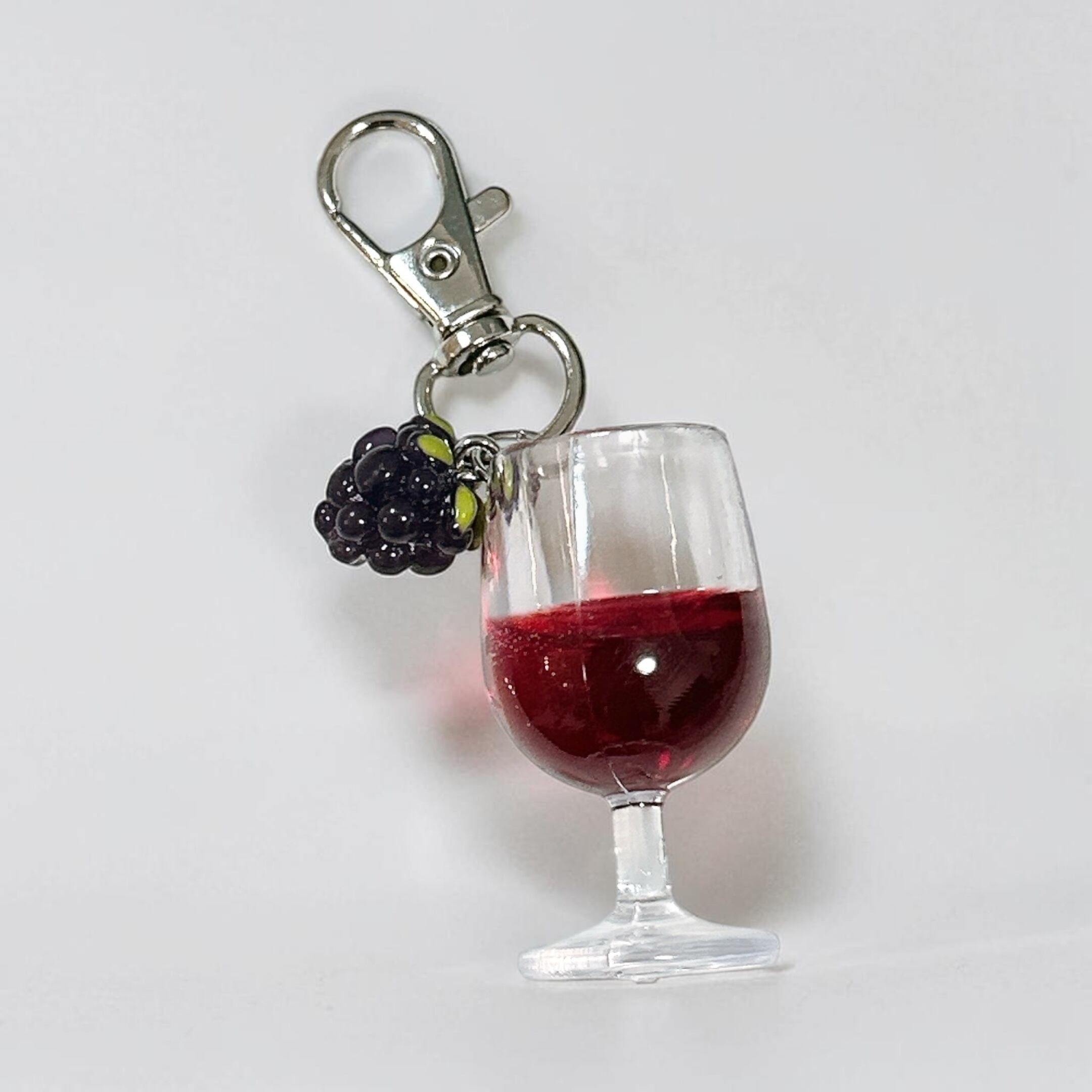 赤ワインとぶどうのチャームがついたキーホルダーです。