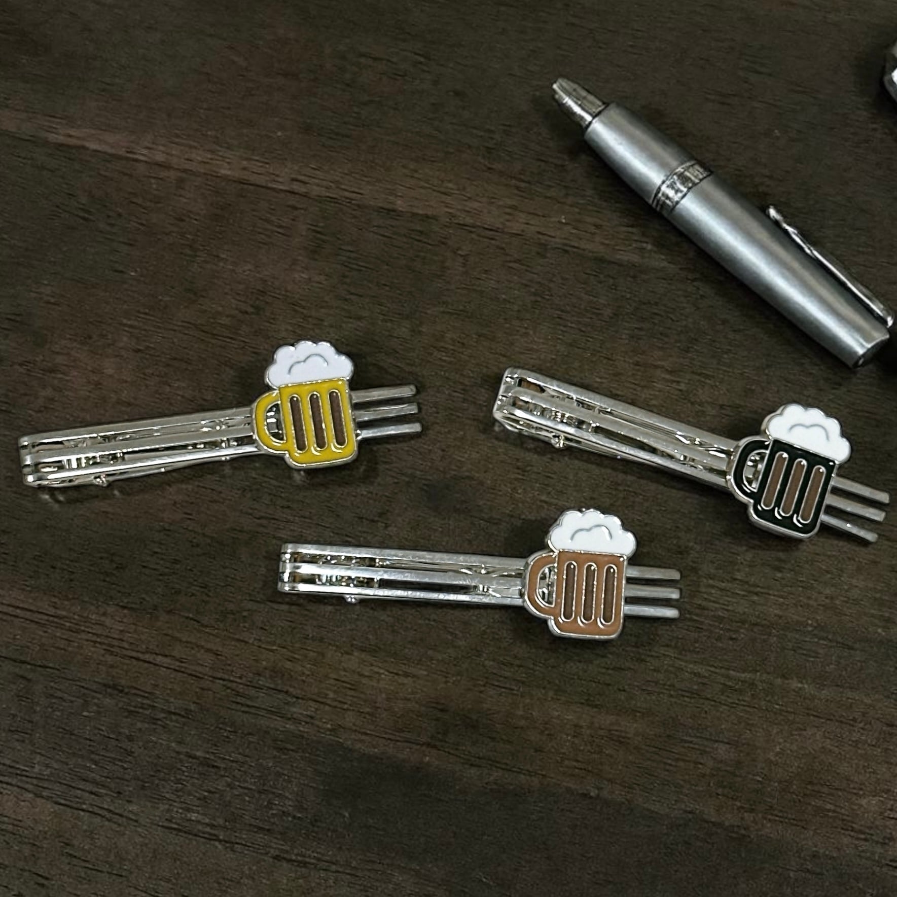 個性豊かなビールのネクタイピン。