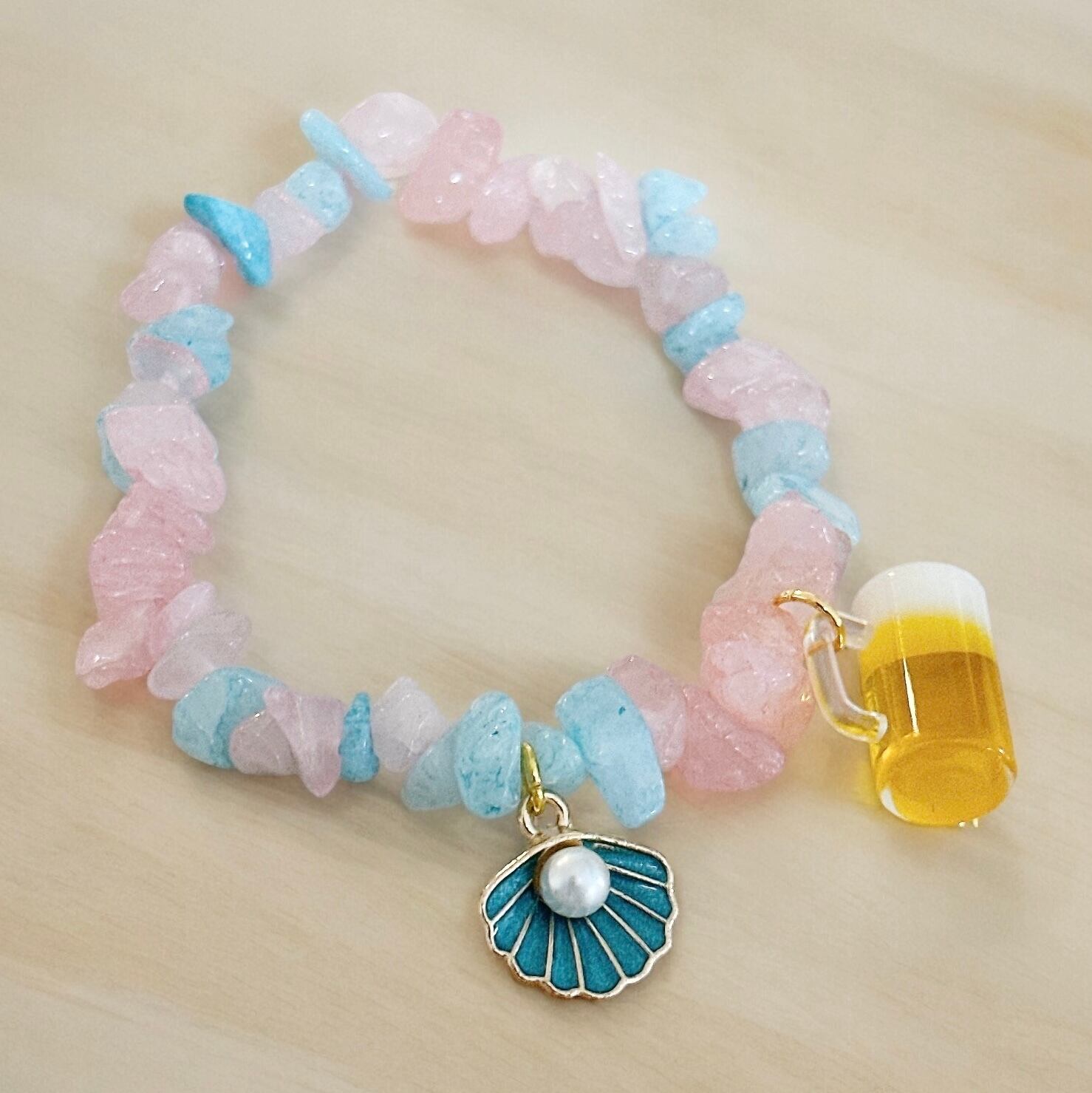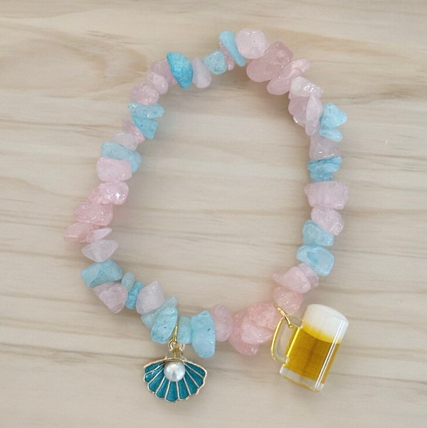 水色とピンクの天然石の組み合わせがさわやかで夏っぽい☆